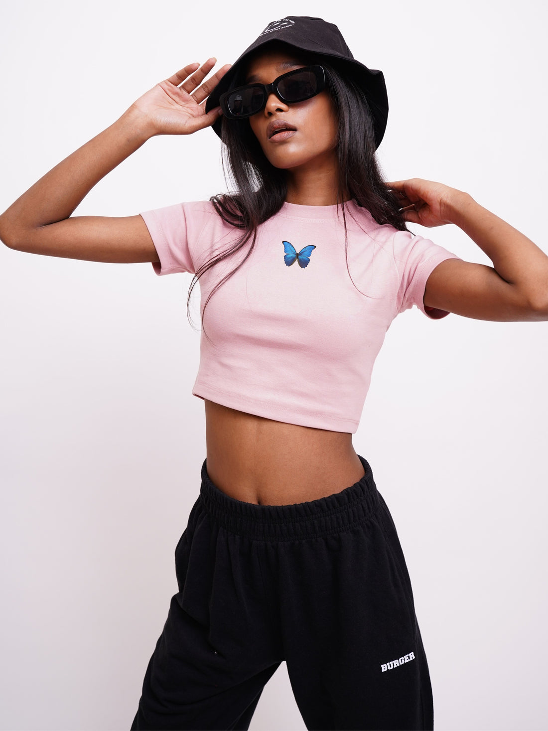 Morpho : Burger Bae Round Neck Crop Baby Tee For Women