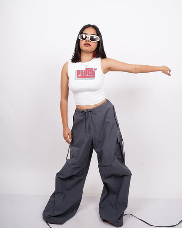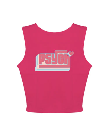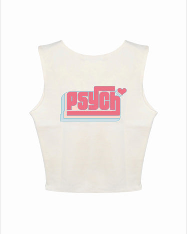 Turn heads with the Psych Rachel Tank, a bold and playful addition to your wardrobe. This sleeveless, cropped tank features a striking "Psych" graphic with a heart detail, adding a quirky and stylish twist. These basic colours makes it versatile and easy to pair with any outfit.