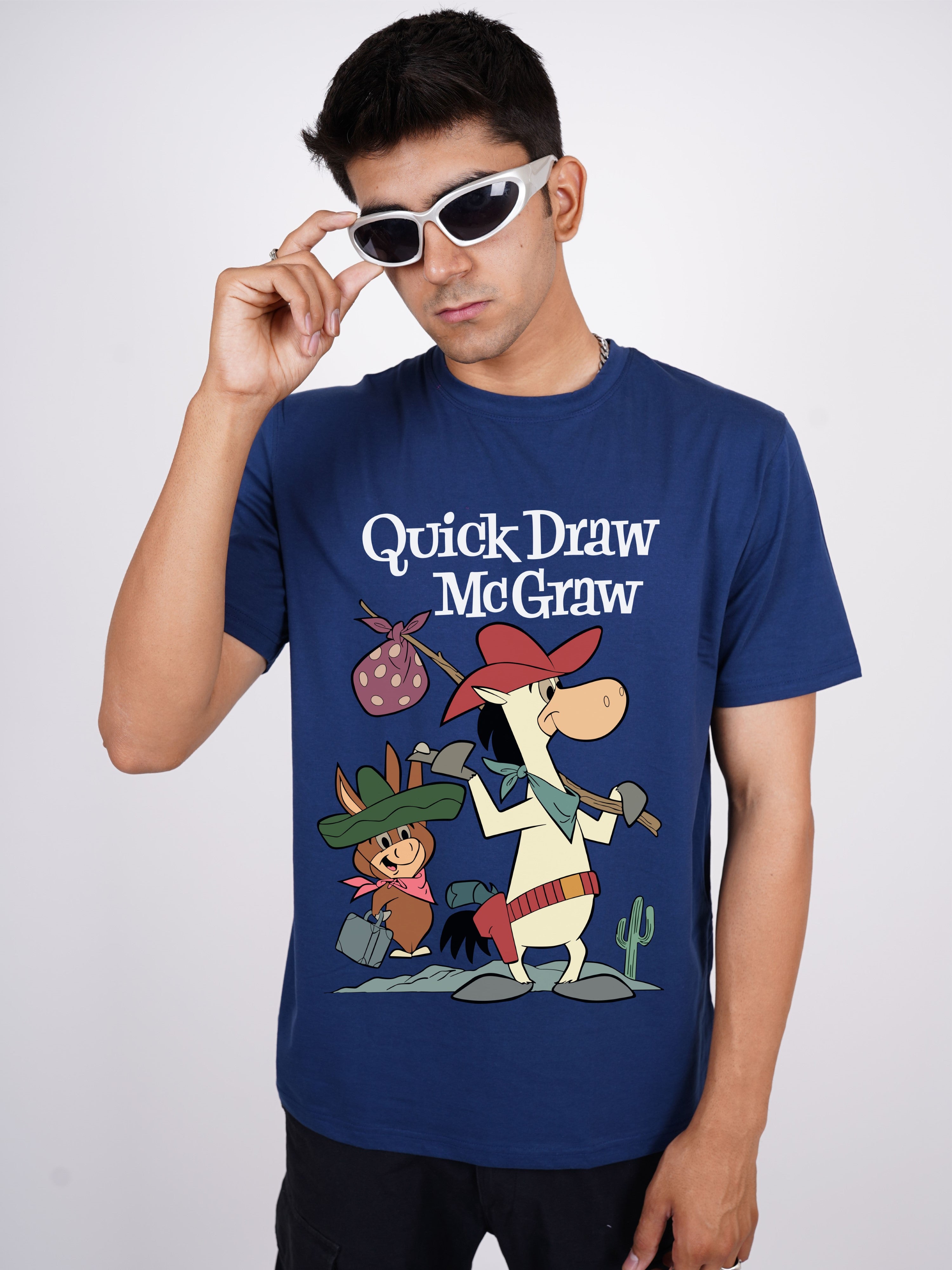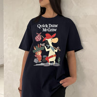 Step into the world of classic cartoons with the Quick Draw McGraw graphic tee! Featuring the iconic cowboy horse and his loyal sidekick, Baba Looey, this t-shirt is a must-have for fans of vintage animation and western-style humor. Whether you're nostalgic for old-school cartoons or just love unique designs, this tee is a perfect choice.