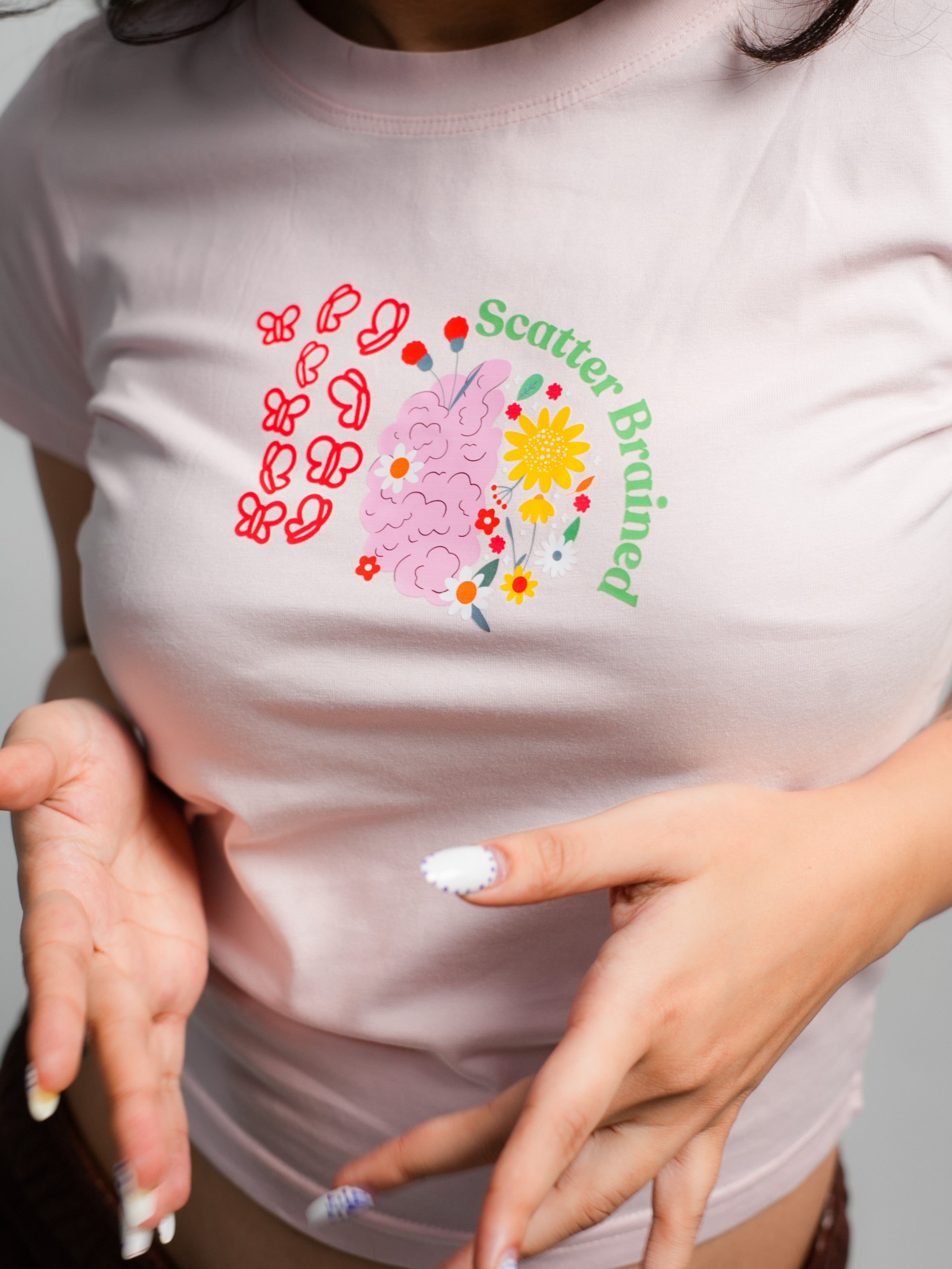 Because overthinking is the new aesthetic 💭🦋 The "Scatter Brained" Baby Tee is made for the dreamers, the distracted, the creatively chaotic — aka, the girls who are everywhere and nowhere at once.