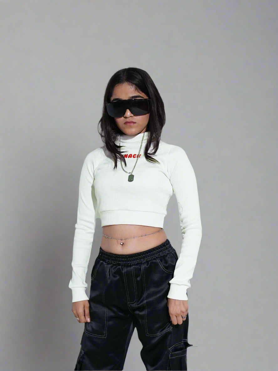 Elevate your wardrobe with this chic turtleneck crop top, designed for both comfort and style. Made from a soft, ribbed fabric, it hugs your body for a flattering fit while offering a cozy feel. The high-neck detail adds a touch of sophistication, making it perfect for layering or wearing solo.