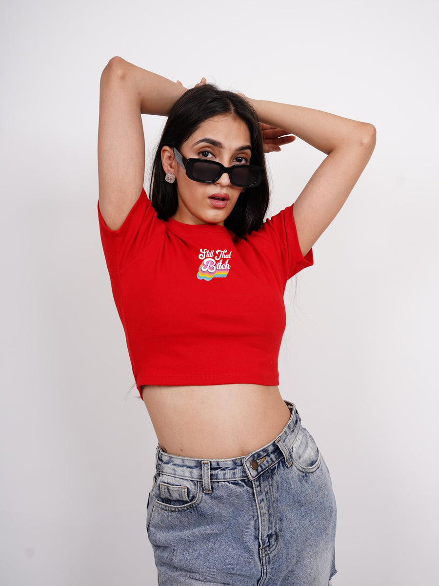 Still That Bitch : Burger Bae Round Neck Crop Baby Tee For Women