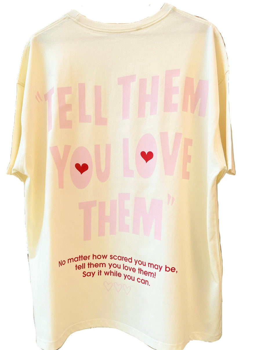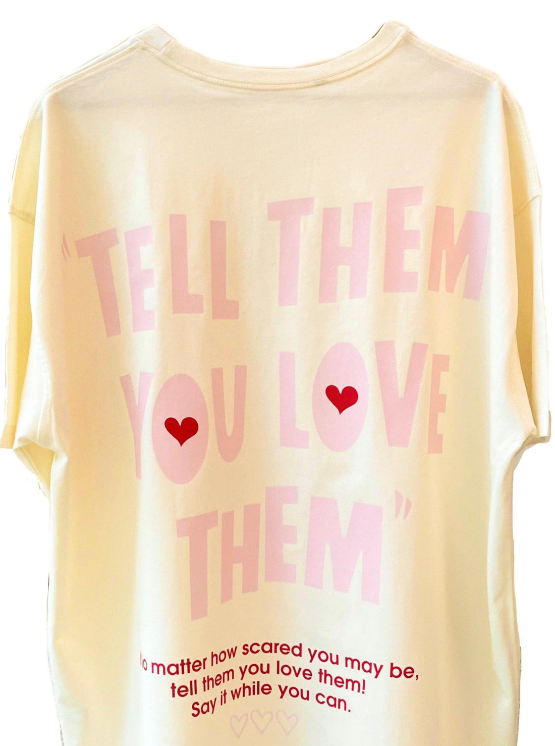 Get ready to wear your heart on your sleeve (literally!) with our drop-sleeved tee that says, "Tell Them You Love Them." This tee is like a fashionable reminder to spread love like confetti. Pair it with your favorite jeans and sneakers, and let your style do the talking - because love is always in fashion, darling!