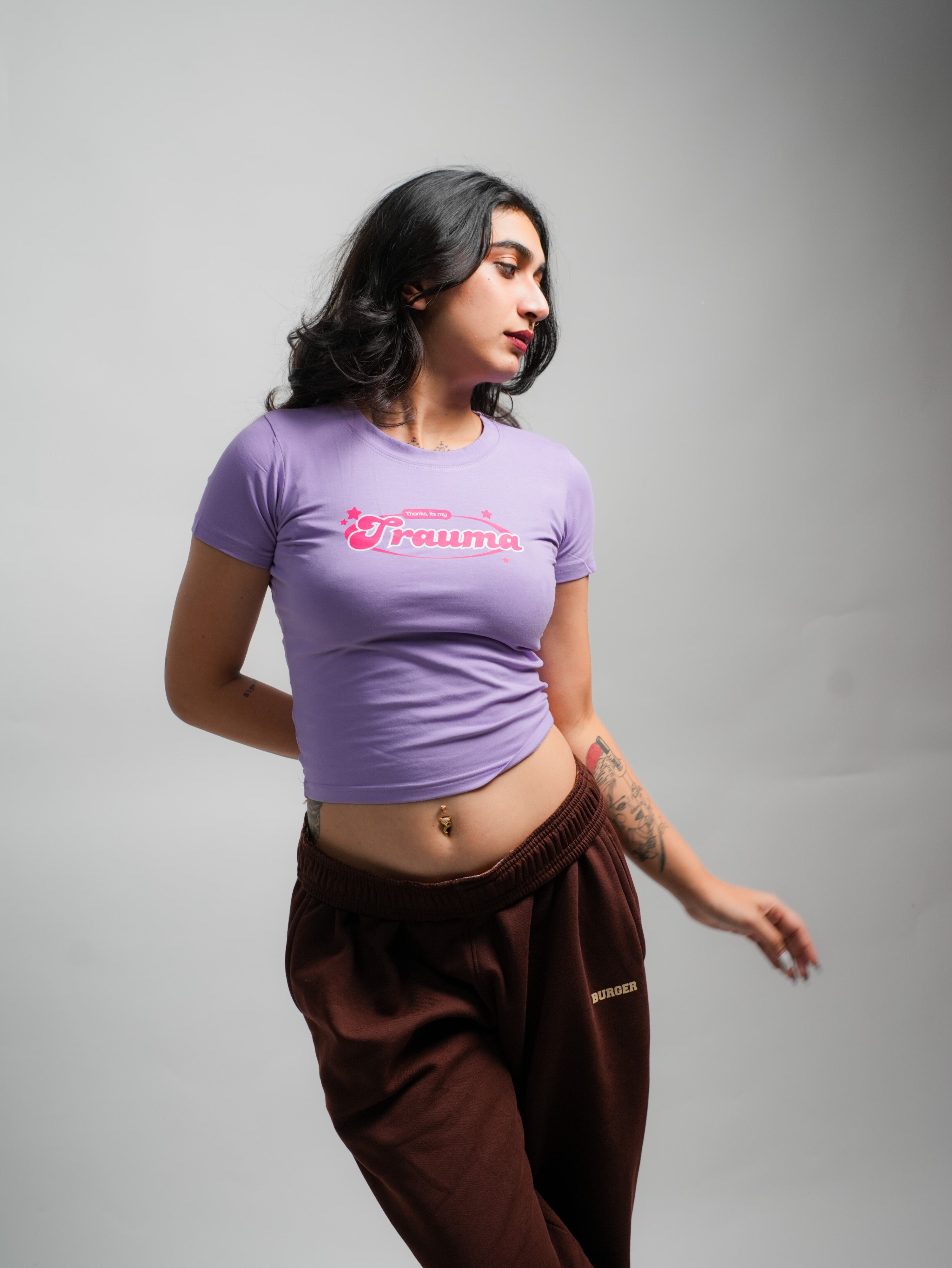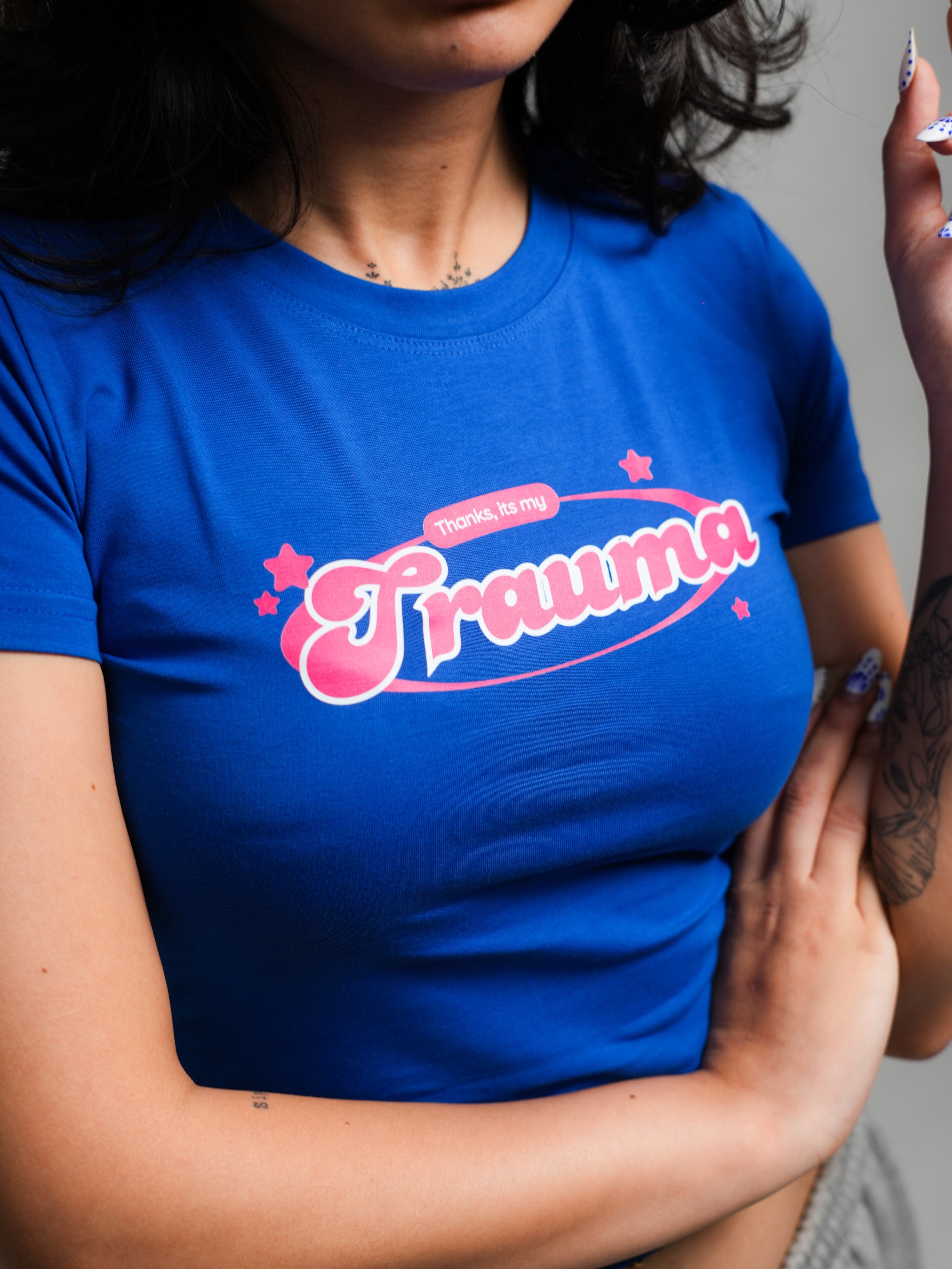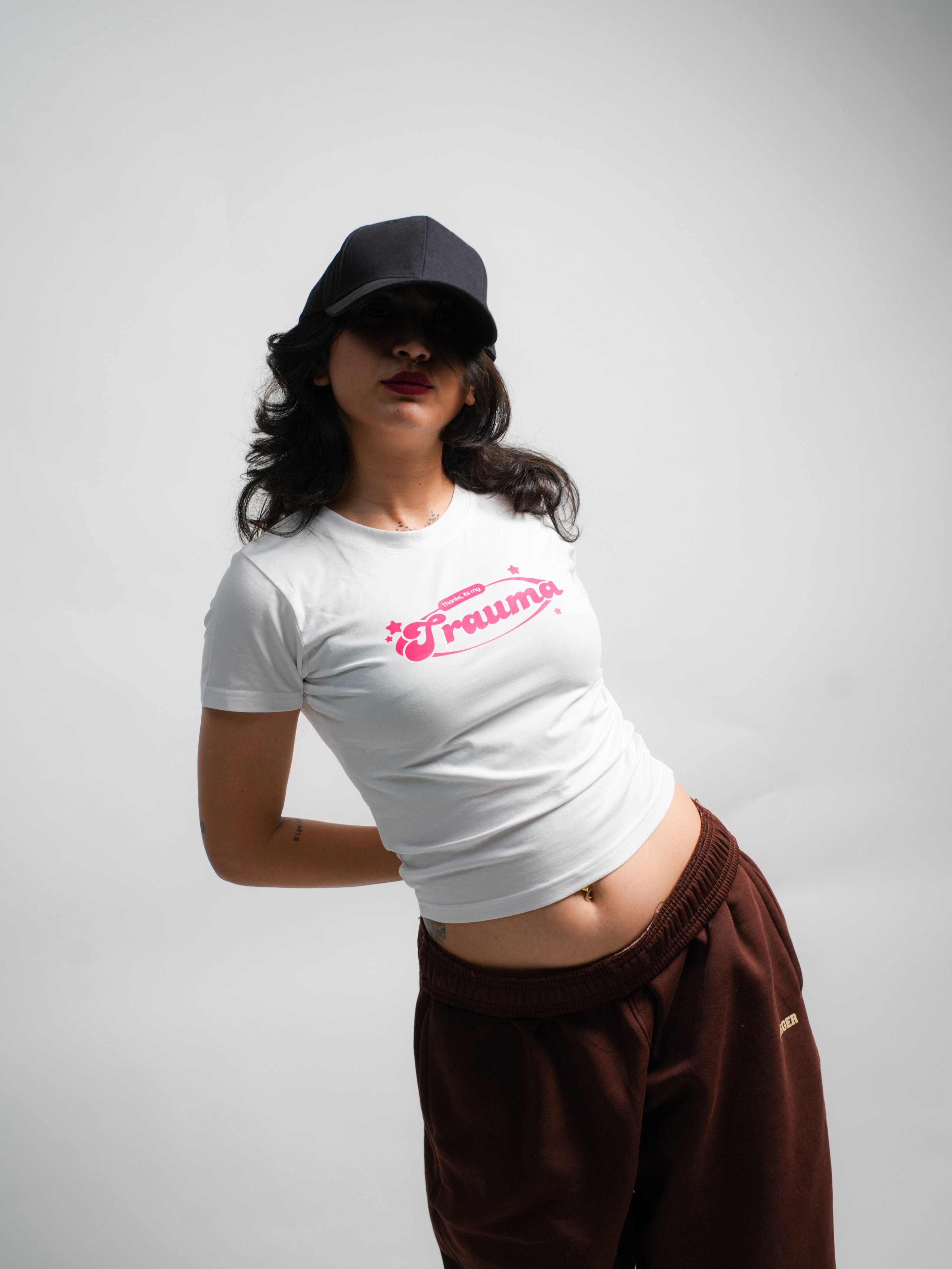 For the girls who heal with humor and slay through the pain — the "Thanks, It’s My Trauma" Baby Tee is your new emotional support fit. Fitted to perfection and unapologetically cheeky, this cropped white tee features hot pink retro-style typography that says exactly what you’re thinking.