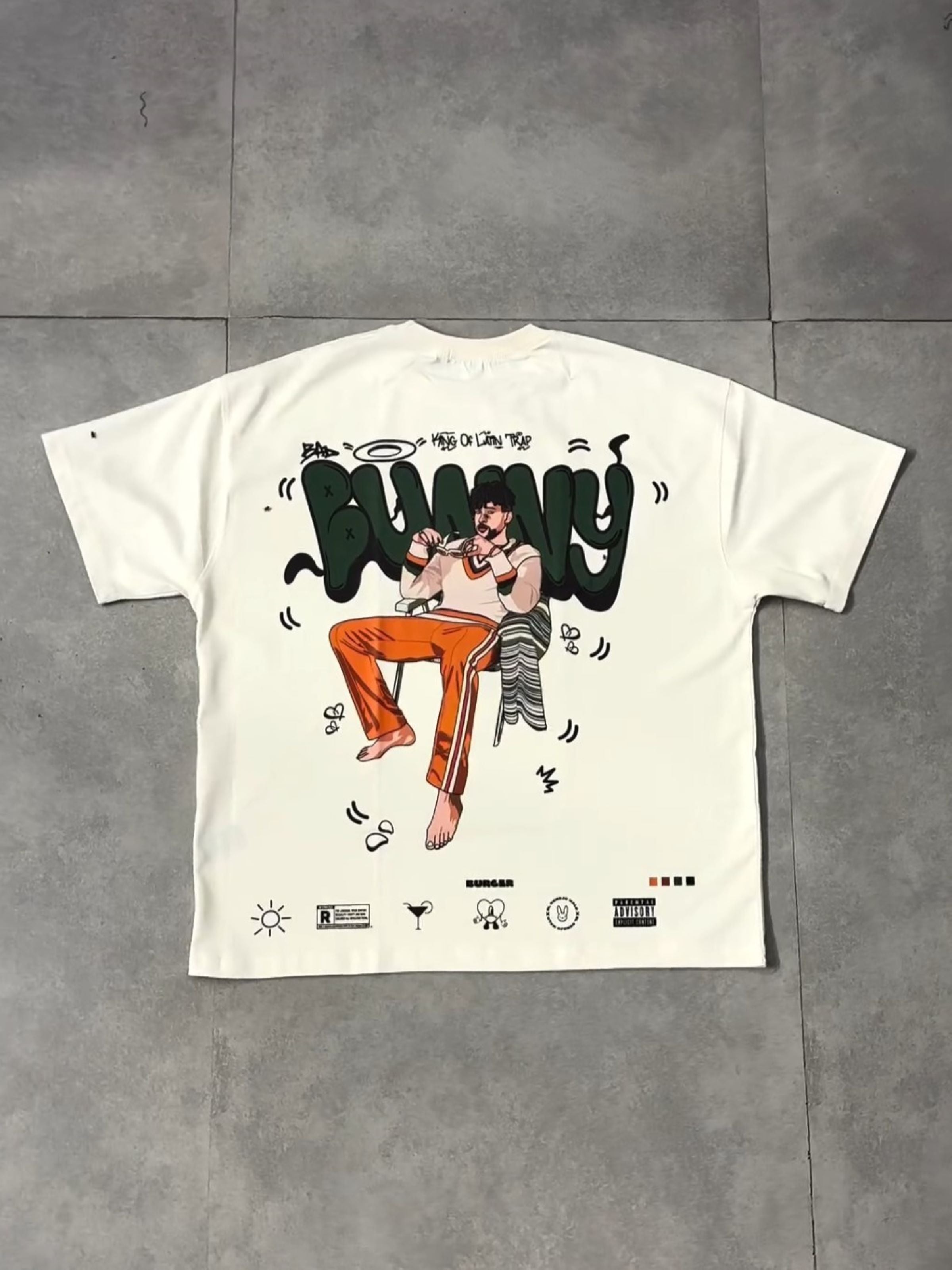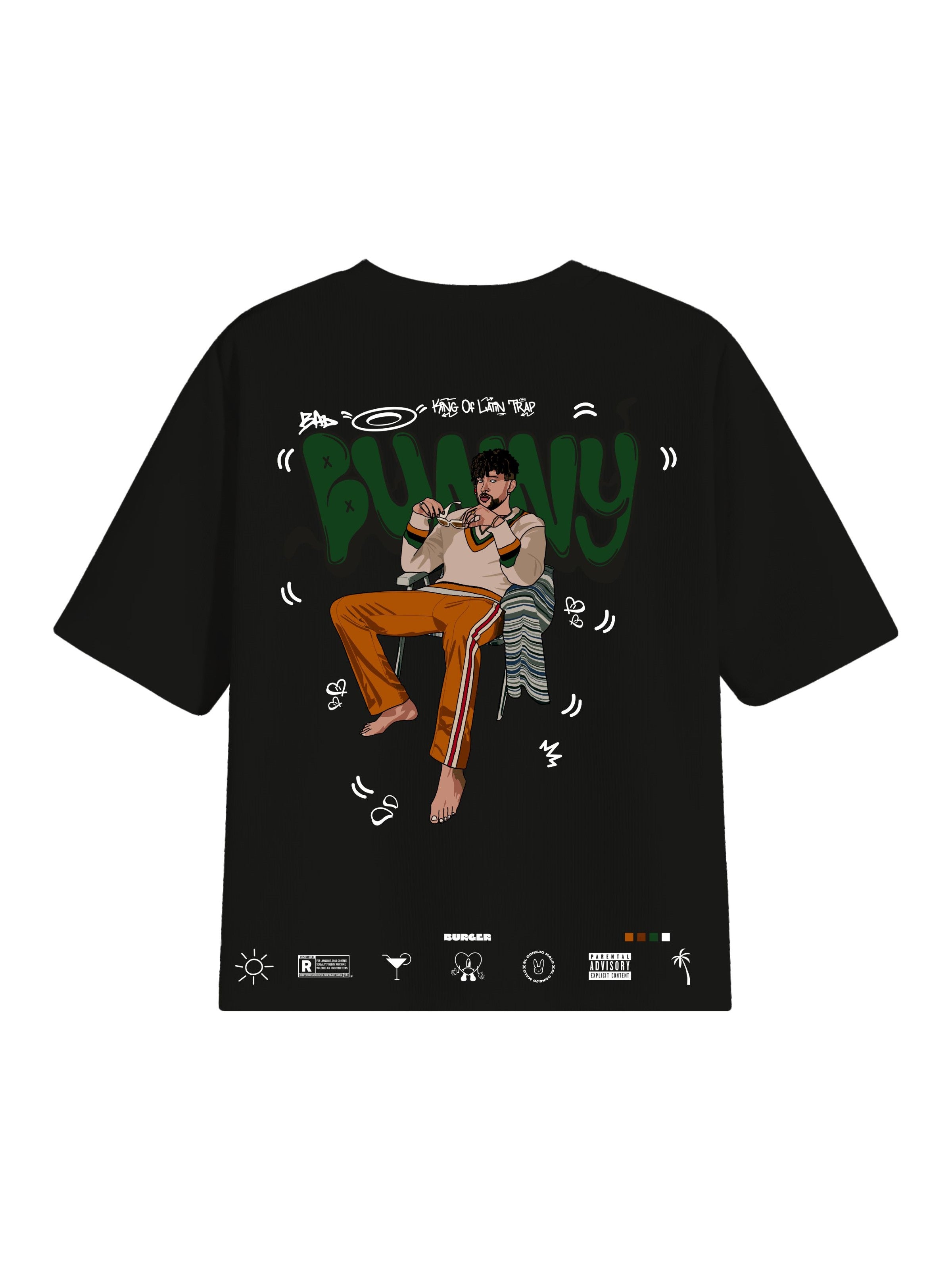 Step into the world of Latin trap and reggaeton with The Bad Bunny Cartoon Art Drop-Sleeved Tee—a statement piece for true fans. Featuring a bold and vibrant cartoon-style illustration of the global music icon, this tee captures Bad Bunny’s unique energy and style.