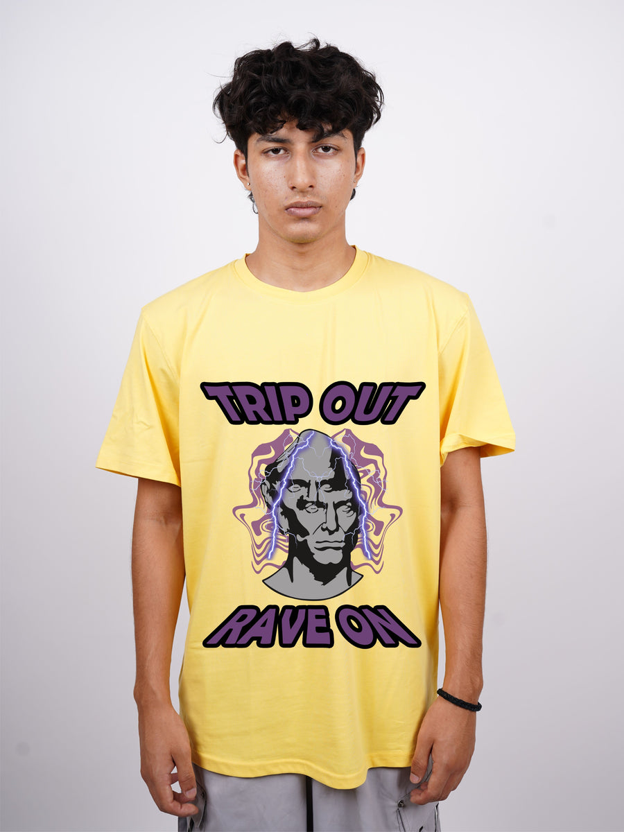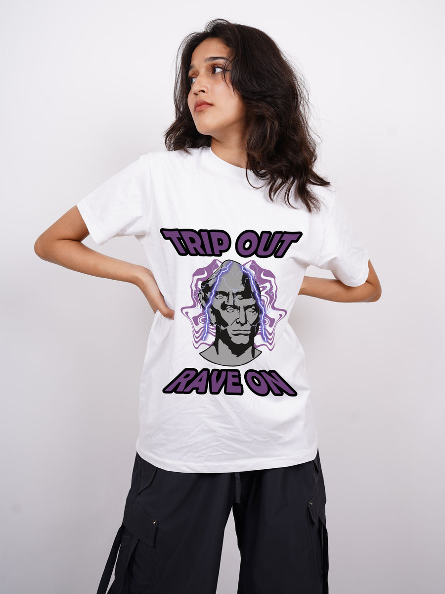 Unleash your rave spirit with the Trip Out Rave On graphic tee! Featuring a bold, psychedelic-inspired design with electrifying colors and a futuristic vibe, this t-shirt is perfect for music lovers, festival-goers, and anyone who embraces the rave culture.