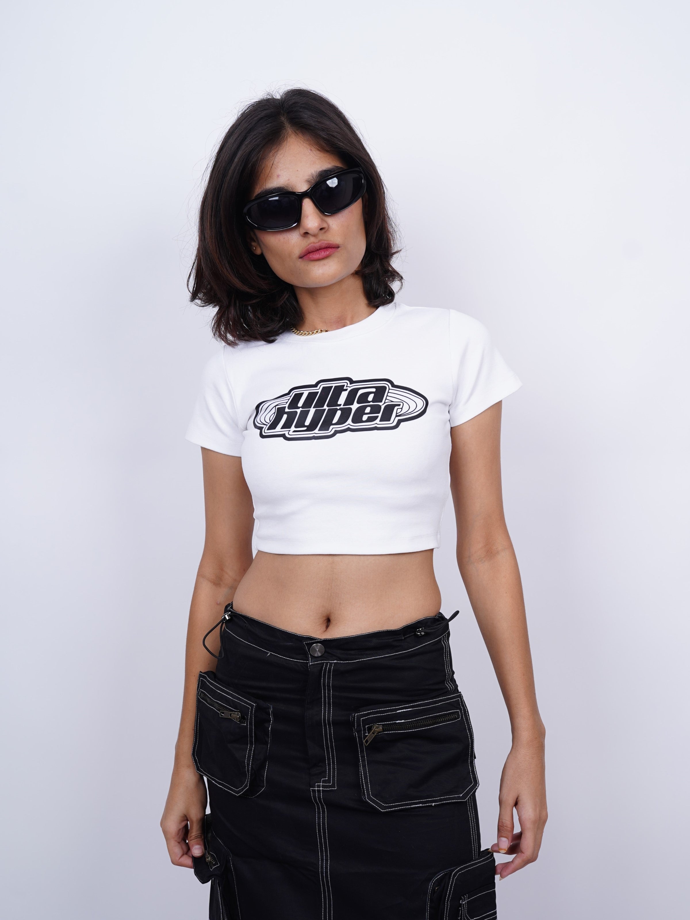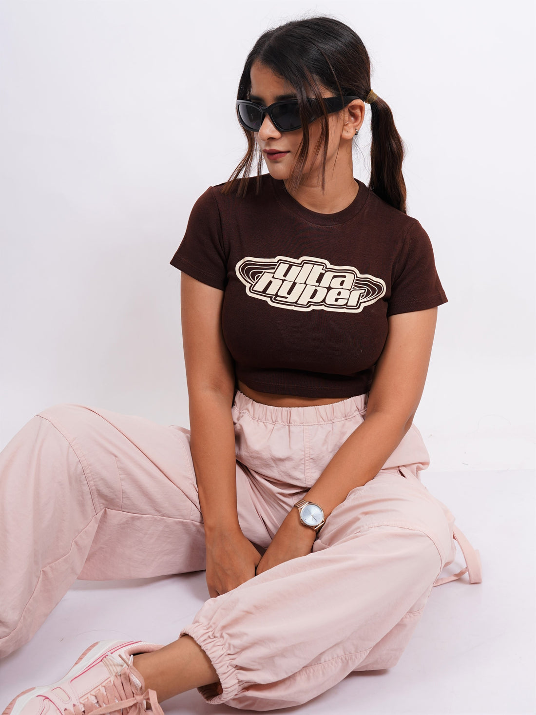 Ultra hyper : Burger Bae Round Neck Crop Baby Tee For Women