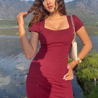 Veronica Dress (Women Bodycon Square Neck Dress) : Wine For Women