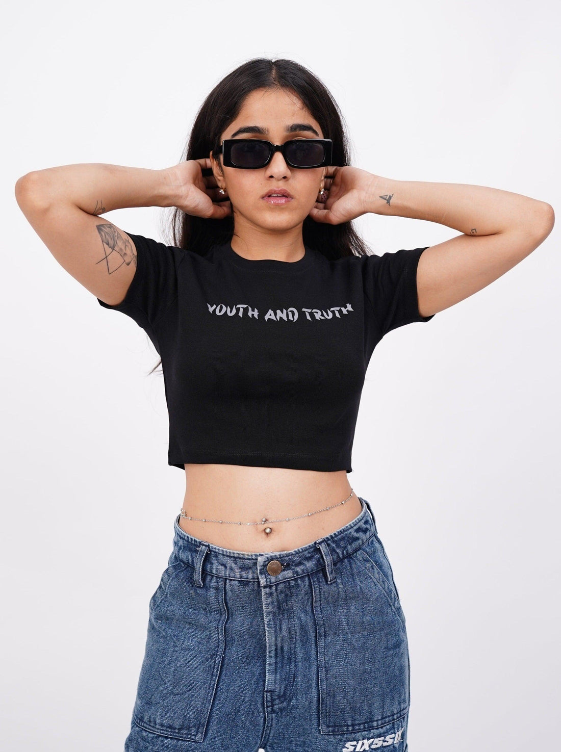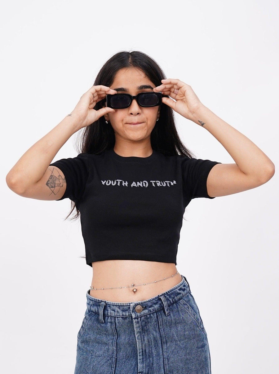 Youth And Truth (Reflective) : Burger Bae Round Neck Crop Baby Tee For Women