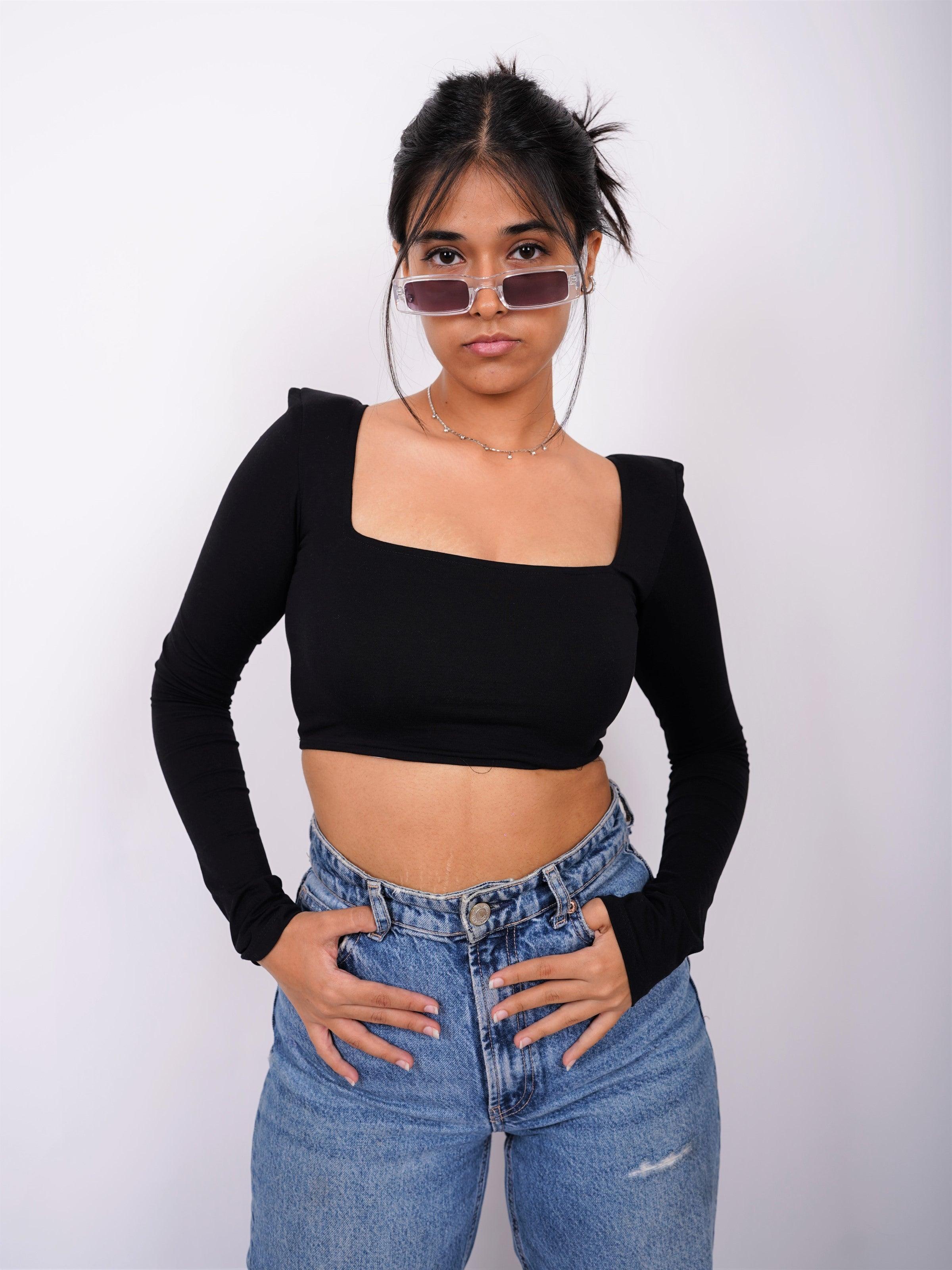 Zendaya Top (Shoulder Pad Full Sleeves Summer Cotton Lycra Top by Burger Bae)