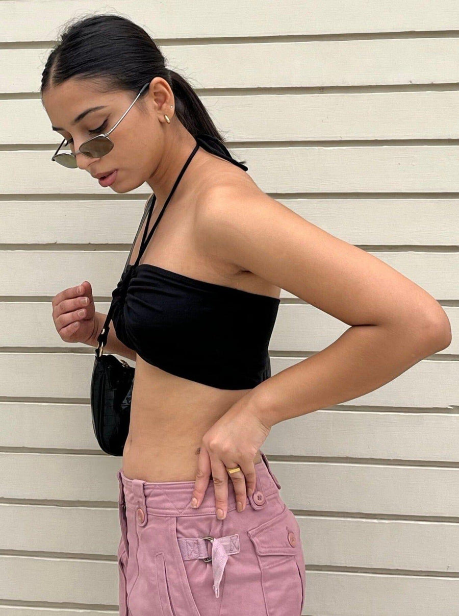 Turn heads and break hearts with the Zoe Tube, a daring take on the classic crop that brings heat with every stitch. This halter-style, ruched tube top features a dramatic front keyhole cutout and a flattering gathered design that shows off your boldest self.